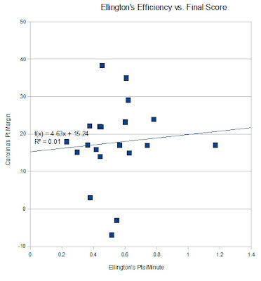There are actually two more factors we must consider to get an accurate number of a teams' consistency, and only one that I can factor in (at the moment). The first is that offense and defense BY THEMSELVES are relatively unimportant. Examples being: Wright State has the 10th best adjusted Defense, but is 83rd overall in kenpom.....also: Notre Dame has the 6th best adjusted Offense and is 36th overall in kenpom. As we all know, it is the COMBINATION of these two that makes a team good. (You can have a 'bad' defensive day and win by 30). So instead of using offensive and defensive efficiencies, we should just use Efficiency Margins. (That is, one team's points per possession minus their opponents').